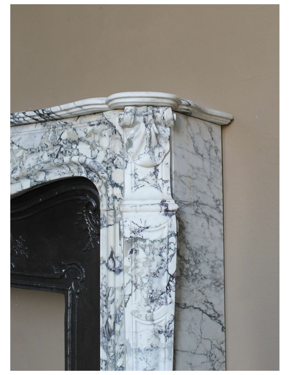 We have already discussed its period of creation (repetition helps: Napoleon III period, second half of the 19th century). The fireplace was discovered in Paris, on Boulevard de Clichy, practically at the foot of Montmartre. Its state of preservation is truly excellent and, dulcis in fundo, as is so often the case with pieces of this quality, its carving was carried out in the thoroughly Italian, industrious, and exceptionally skilled Lunigiana — a land that, from 399 BC to the present day (not merely a world record, but almost a cosmic one), has been continuously unrivaled in the quality of its sculptural tradition.