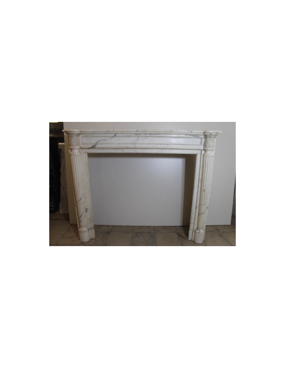 VERY FINE FIREPLACE STYLISTICALLY BETWEEN THE LOUIS XVI AND THE EMPIRE (BUT, MIND YOU,ITS BIRTH IS IN THE NAPOLEON III PERIOD) IN CARRARA STATUARY, PROVENANCE PARIS, EXCELLENT CONSERVATION, “HUMAN” MEASUREMENTS…
