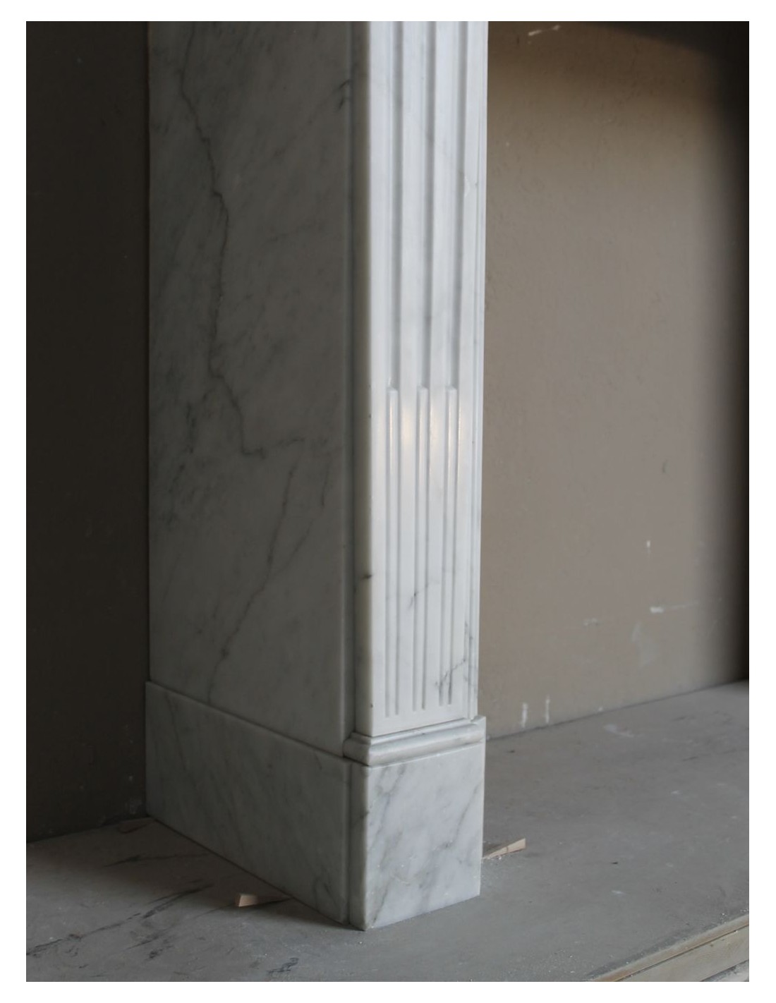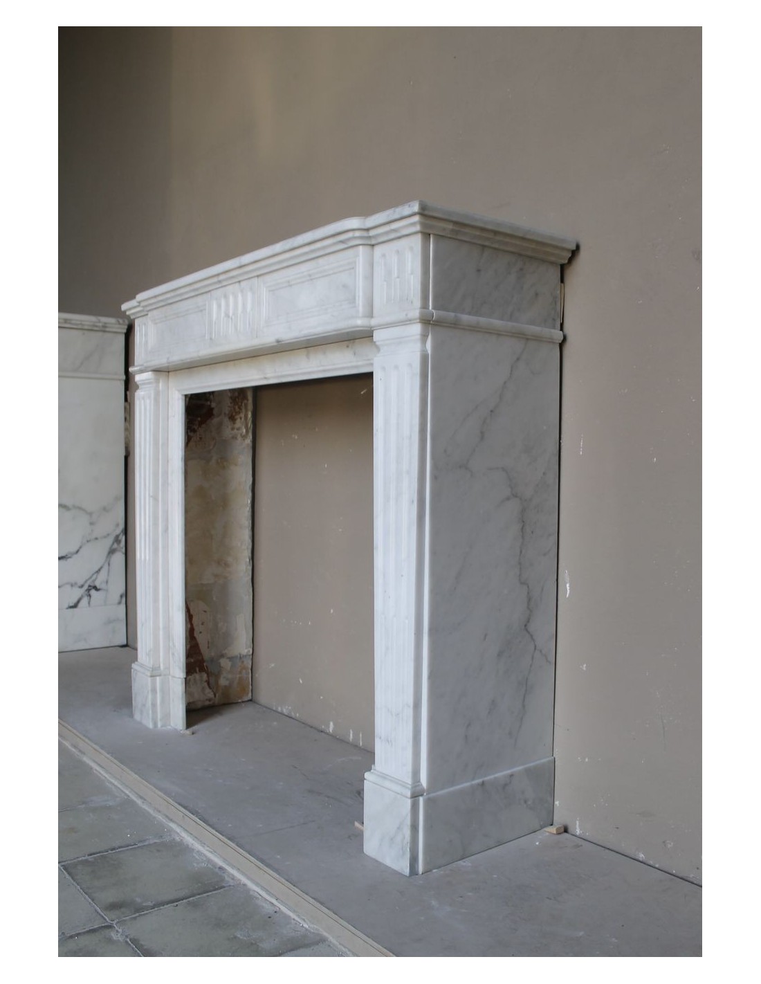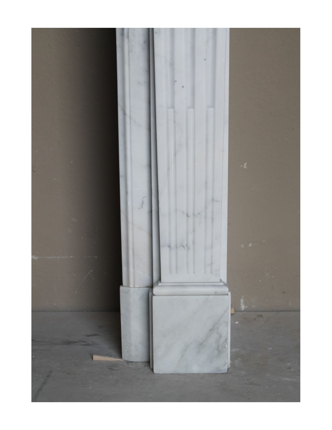 However, and so we will give Caesar what is Caesar's, in every family there is a richer, more elegant, stronger component.. And the cannelure specimen I am presenting here is certainly THE RICHEST AND STRONGEST OF HIS FAMILY. The equipment that makes it so different from its little brothers lies mainly in the front (which in the central part juts out over the front) and in the floor (which also juts out to follow the movement of the front... In addition to this “structural” variant, this specific specimen is also endowed with some finesse of detail, such as the so-called “Pompeian flutes” between grooves at the foot of the leg or beautiful reframing in the front. Sometimes details are very important in the overall liking, or are they?! And these are the differences between this specific cannelure and all the other members of the same family published here which are all admittedly, poorer. The excellent quality of its White Carrara “Pure” marble can also make a difference (today there is only one quarry of this marble left, which is called “Gioia”). To carve “poor” fireplaces VERY hardly afforded such Noble Whites as this.