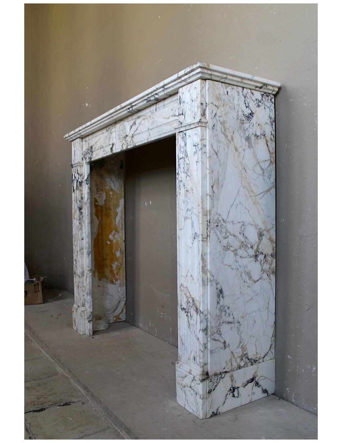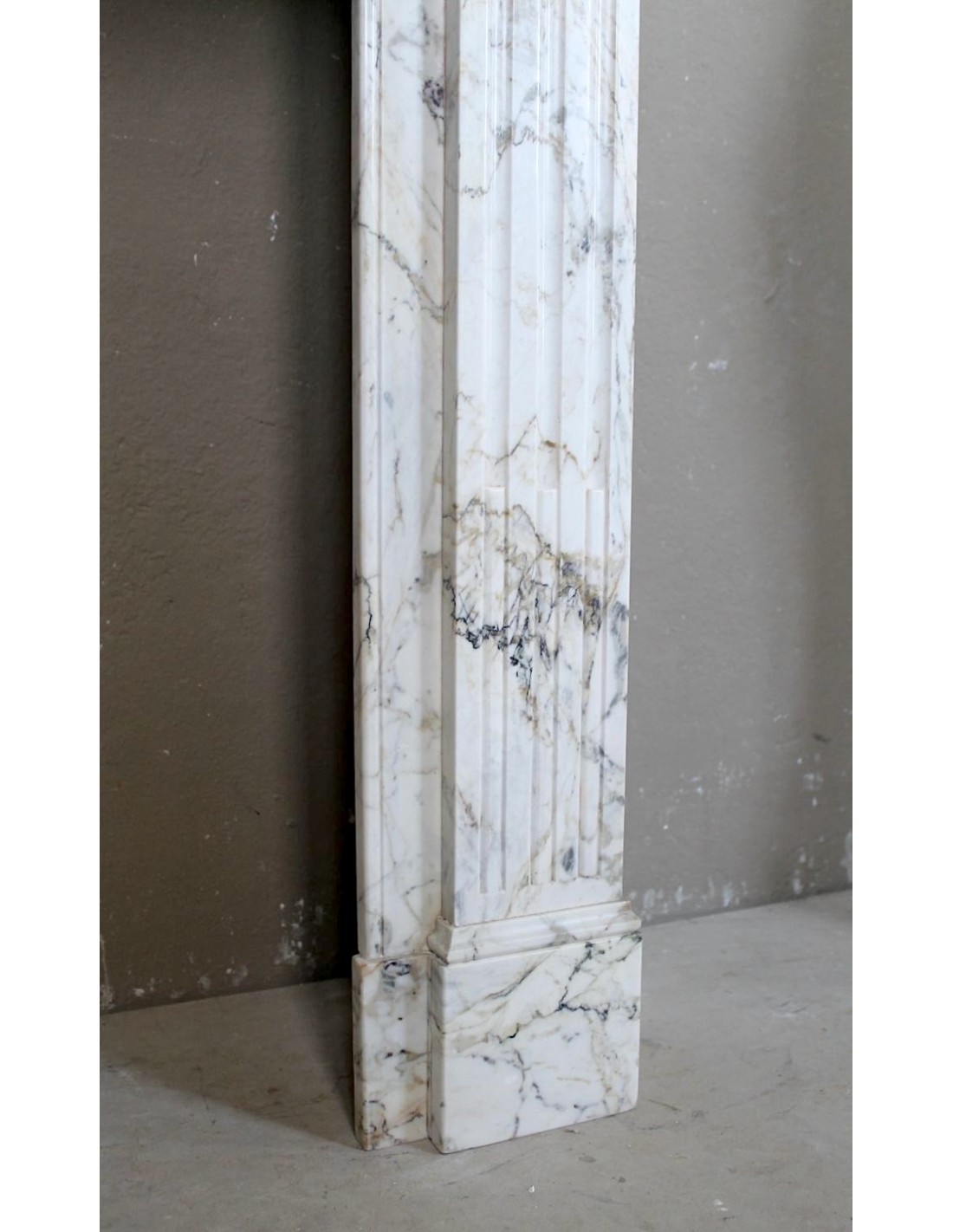 260 LOUIS XVI “MARGUERITE” FIREPLACE MANTEL CARVED IN GOLD CALACATTA MARBLE
