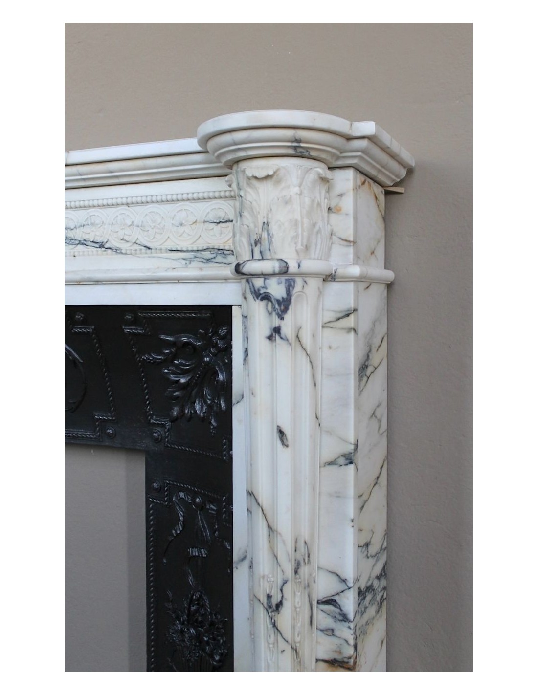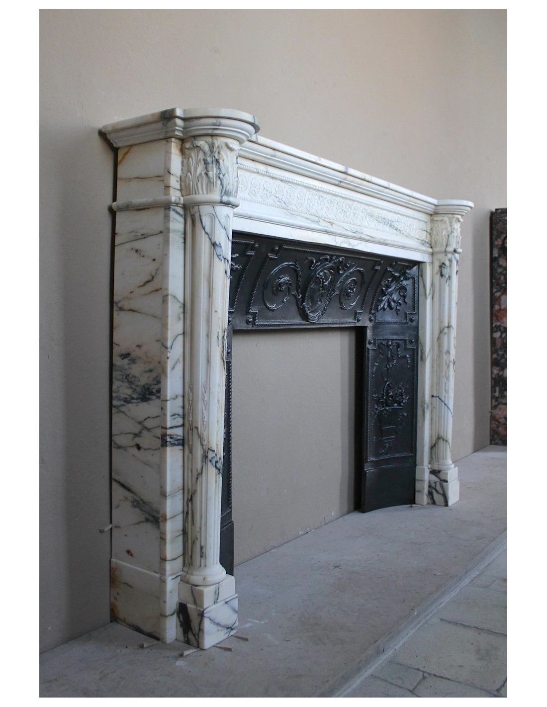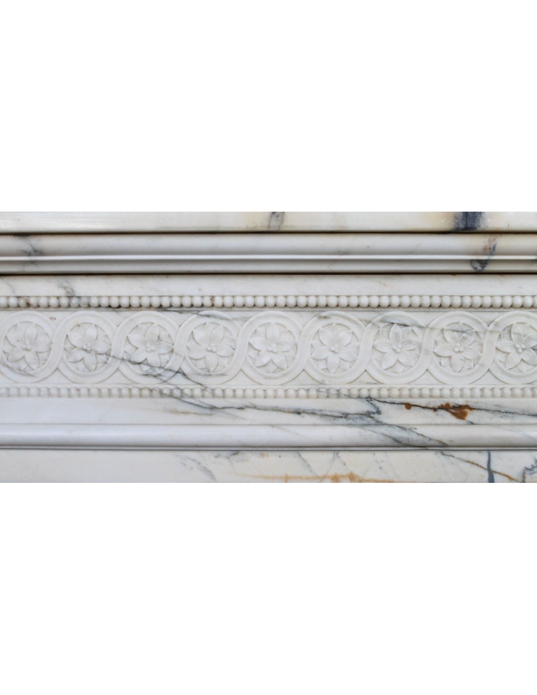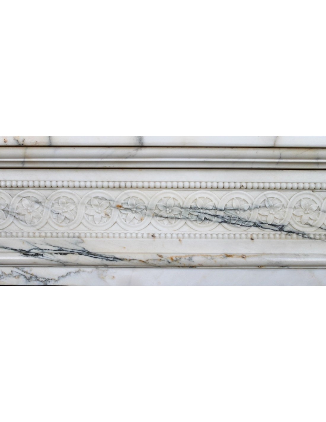 Let us begin with the decorative element that gives this fireplace its very name: that Cosmatesque work stretched across the front, rich in circles intertwined with one another, each containing a small wildflower. Since these round little flowers appeared to Parisians very similar to the round “Macaron” biscuits they adore, the French decided to give this sweet name to this particular fireplace model as well.