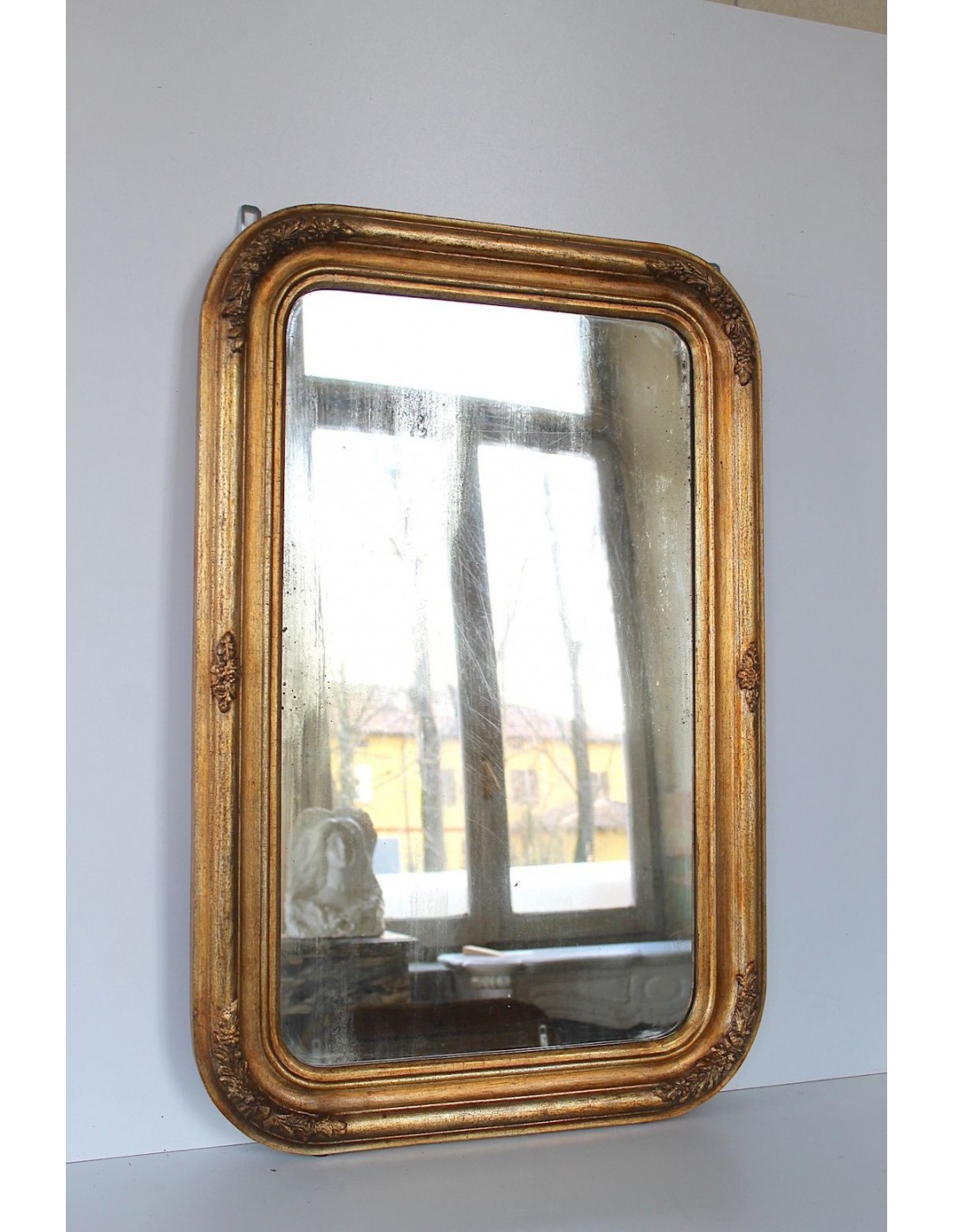 021 SPECCHIERA ANTICA A VASSOIO DORATA ARRICCHITA DA DECORI FLOREALI