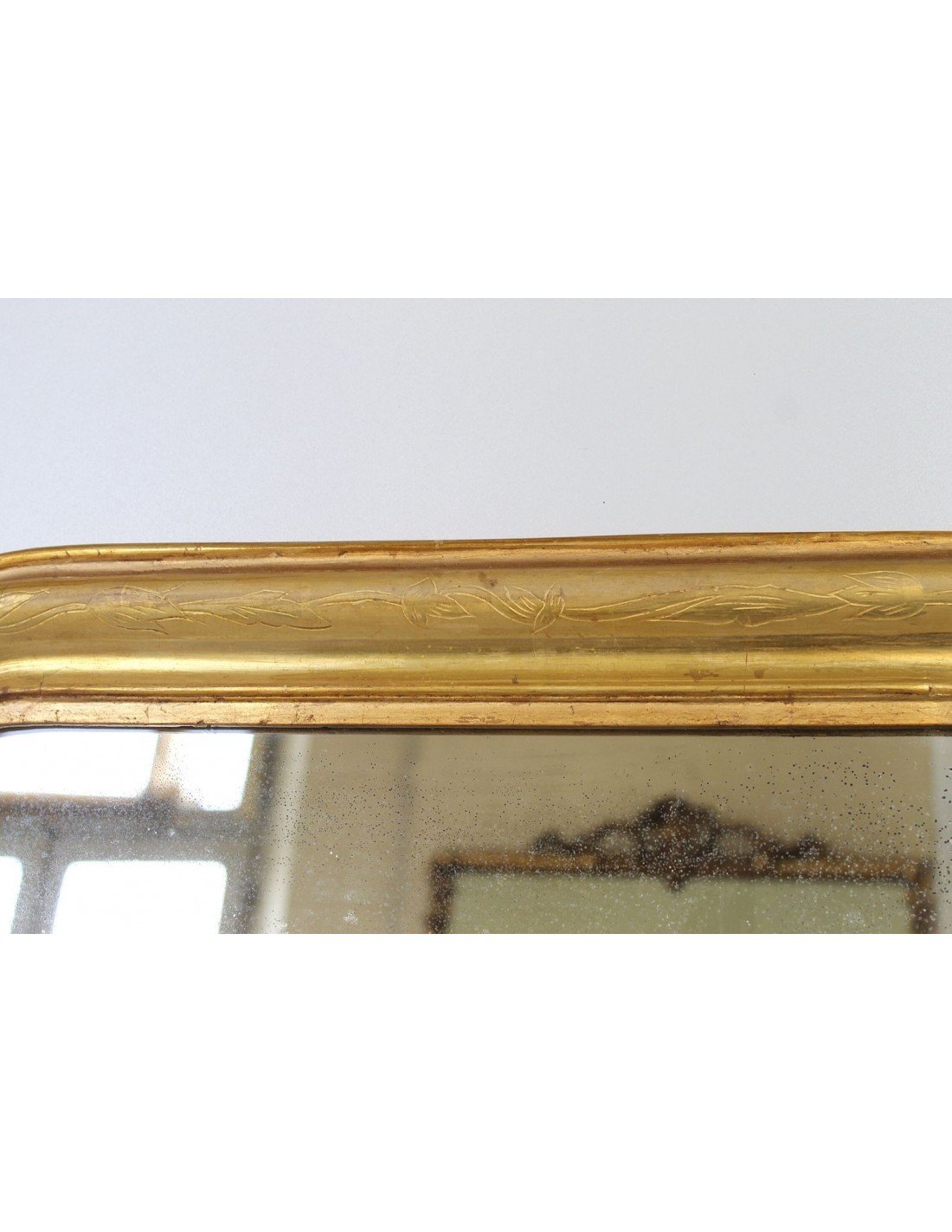 SPECCHIERA COMPLETAMENTE RESTAURATA DI RECENTE MANTENENDO LA DORATURA A FOGLIA NELLA COSTOLA CENTRALE E PIU' LARGA CON RESTAURI AD OTTONINA NELLE PARTI LATERALI.
