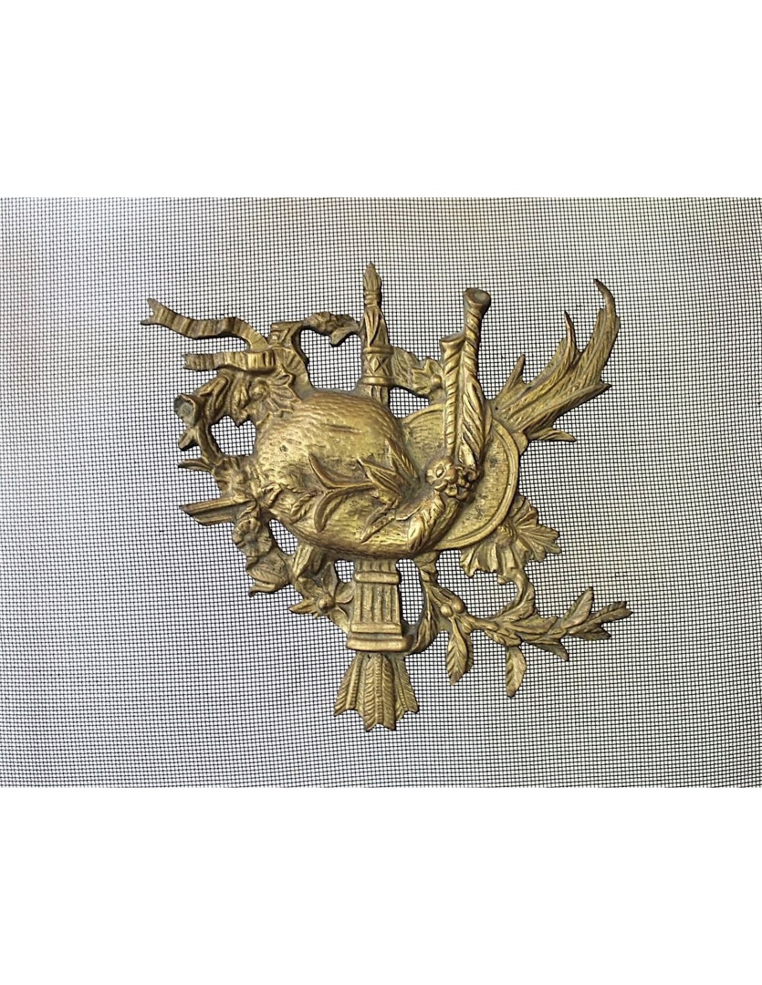 PARASCINTILLE OTTOCENTESCO APPELLATO "INSTRUMENTS DE MUSIQUE", TUTTO IN FUSIONI DI BRONZO, EPOCA NAPOLEONE III, RE  STAURO PROFESSIONALE (COME SEMPRE, DEL RESTO), PROVENIENZA PARIGI.