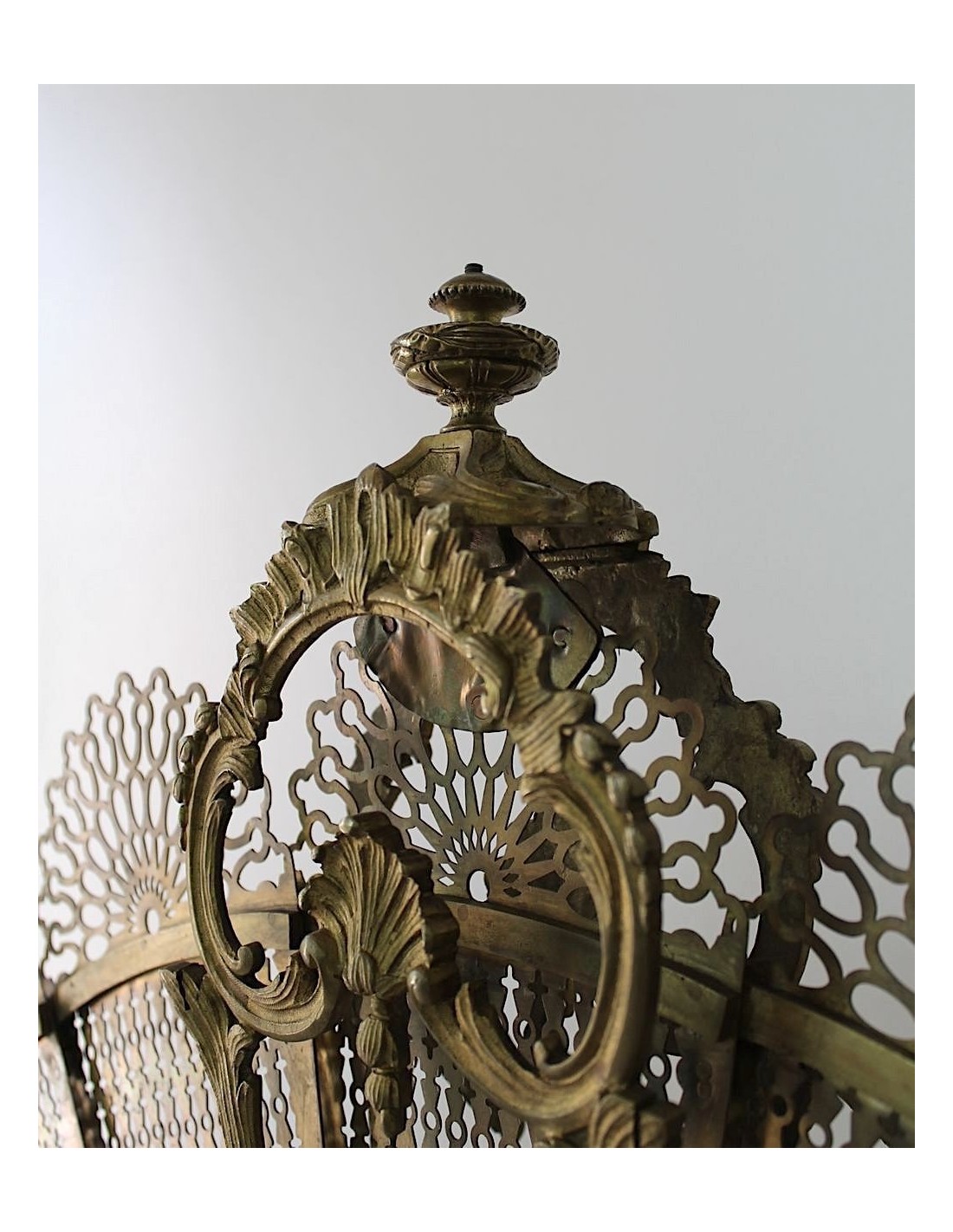 Spark guards 007 PARASCINTILLE A CODA DI PAVONE, IN BRONZO ED OTTONE, DI PICCOLA TAGLIA 2130 €2,200.00 Larghezza max 92 - Altezza max 59 - Profondità 12 cmPREZZO IMPONIBILE € 2200 + IVA View