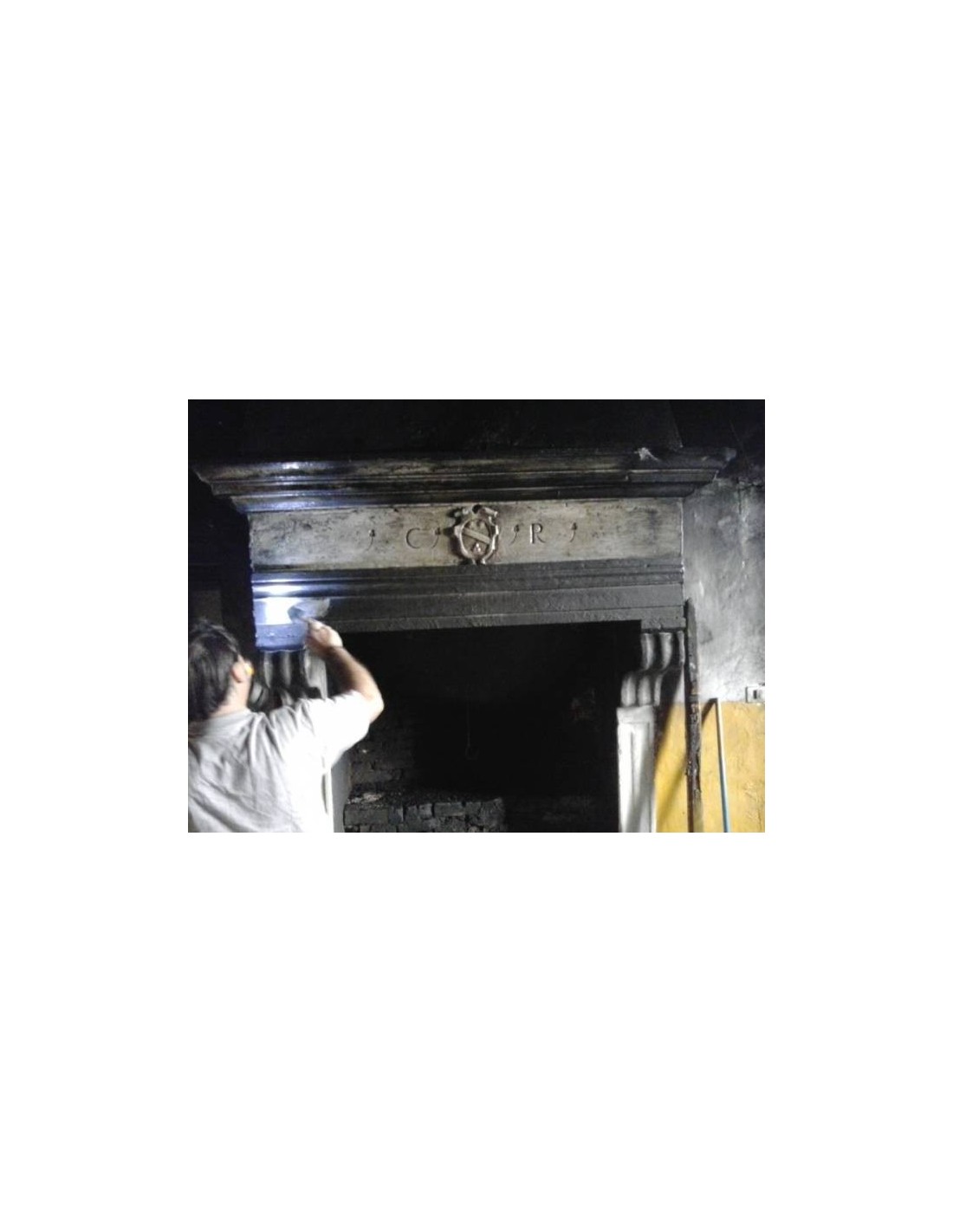 IT COMES FROM THE SAN SEPOLCRO AREA, WE SHOW IT TO YOU BEFORE ITS DISASSEMBLY (TRY ASKING THE MANY SELLERS OF RENAISSANCE FIREPLACES IF THEY HAVE PICTURES OF THE FIREPLACES THEY PUT UP FOR SALE BEFORE THEY ARE DISASSEMBLED.. ), IT IS IN VERY GOOD CONDITION (THE ONLY “DAMAGE” WAS DONE BY US WHEN WE DISASSEMBLED IT: A VERY SMALL PART OF ONE OF THE CAPITALS CAME OFF, AS SHOWN IN THE PUBLISHED PICTURES. BUT IT WILL BE VERY EASY TO PUT IT BACK IN ITS PLACE WITHOUT ANYONE NOTICING THE MISDEED...) AND IT WAS CARVED IN PIETRA SERENA.