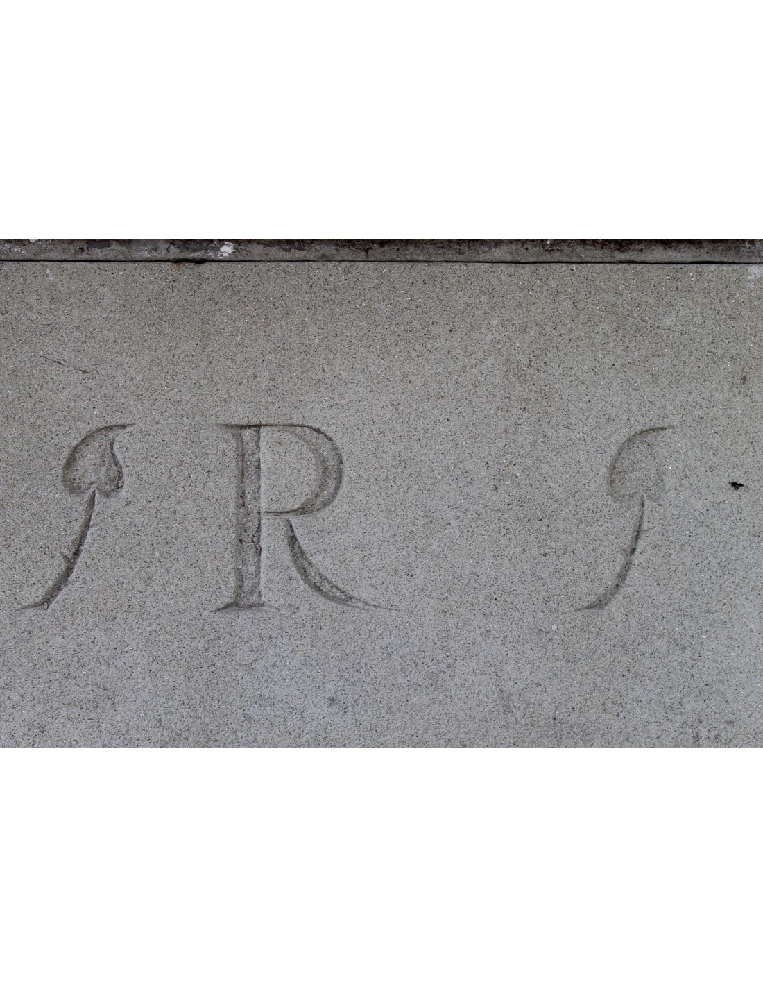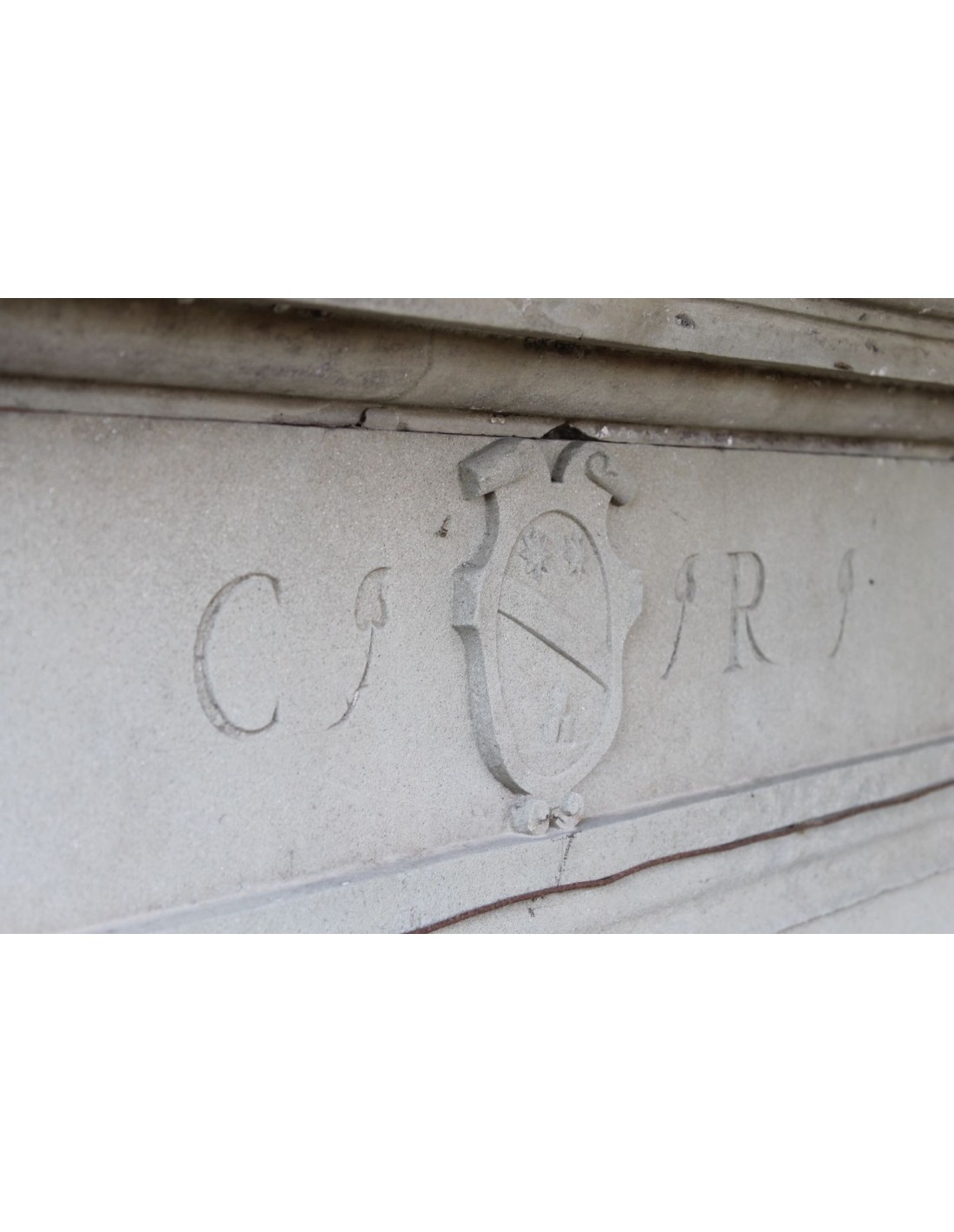 901 AG LARGE AND GENUINE ITALIAN SANDSTONE FIREPLACE WITH BLAZON