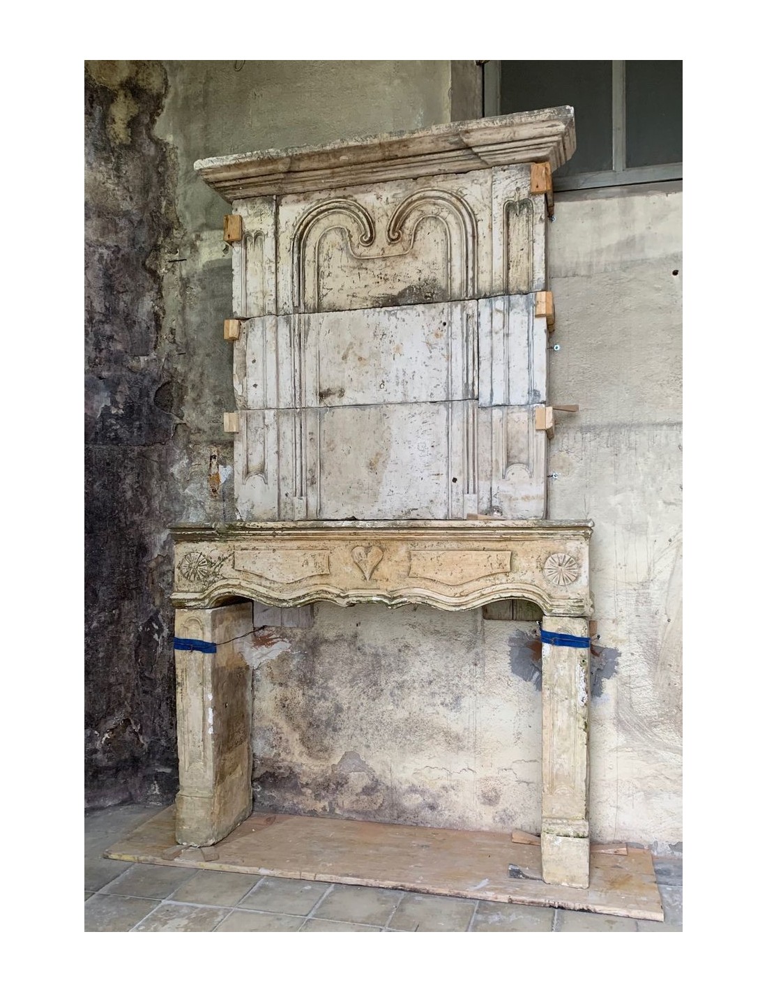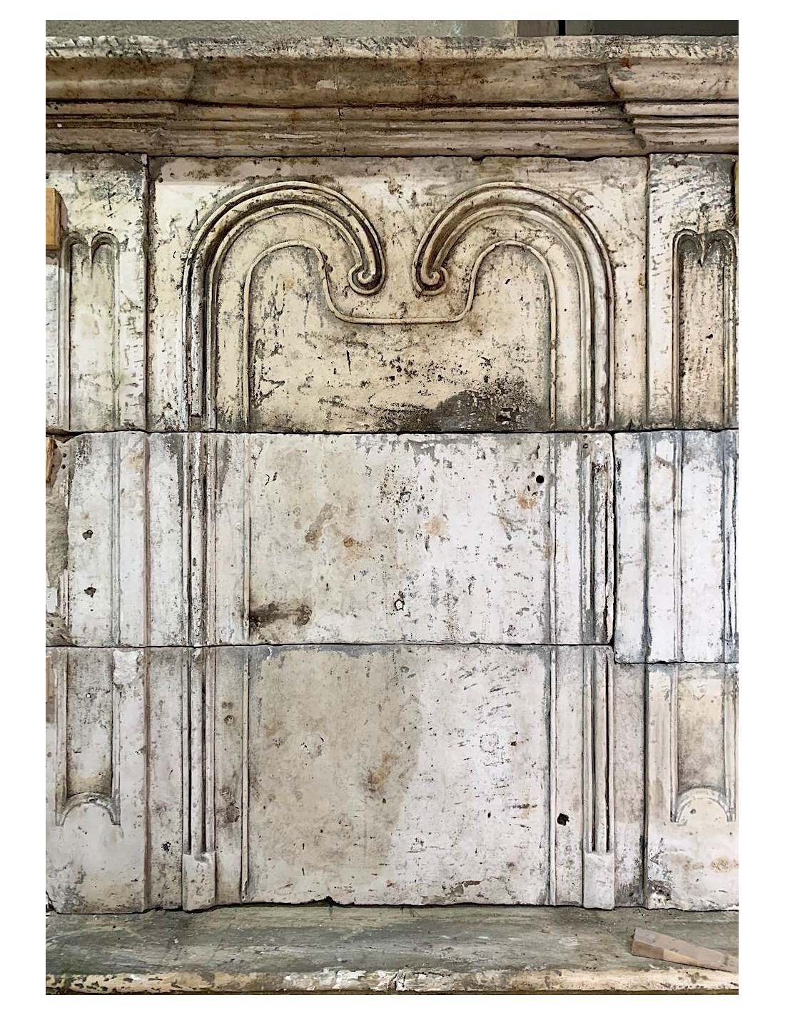 In addition, this very rare mantel was made in the noble and very fine “Caen Stone,” in my opinion the best, because of its being very little porous and also because of its color, very homogeneous and tending to white.. This fireplace comes from the land of Brittany.