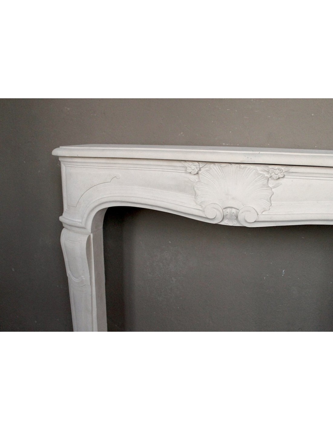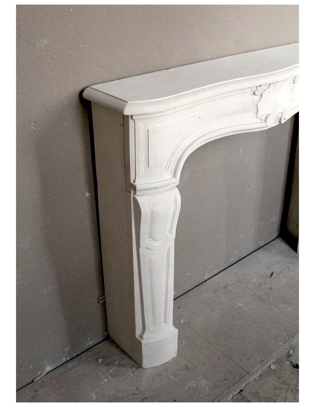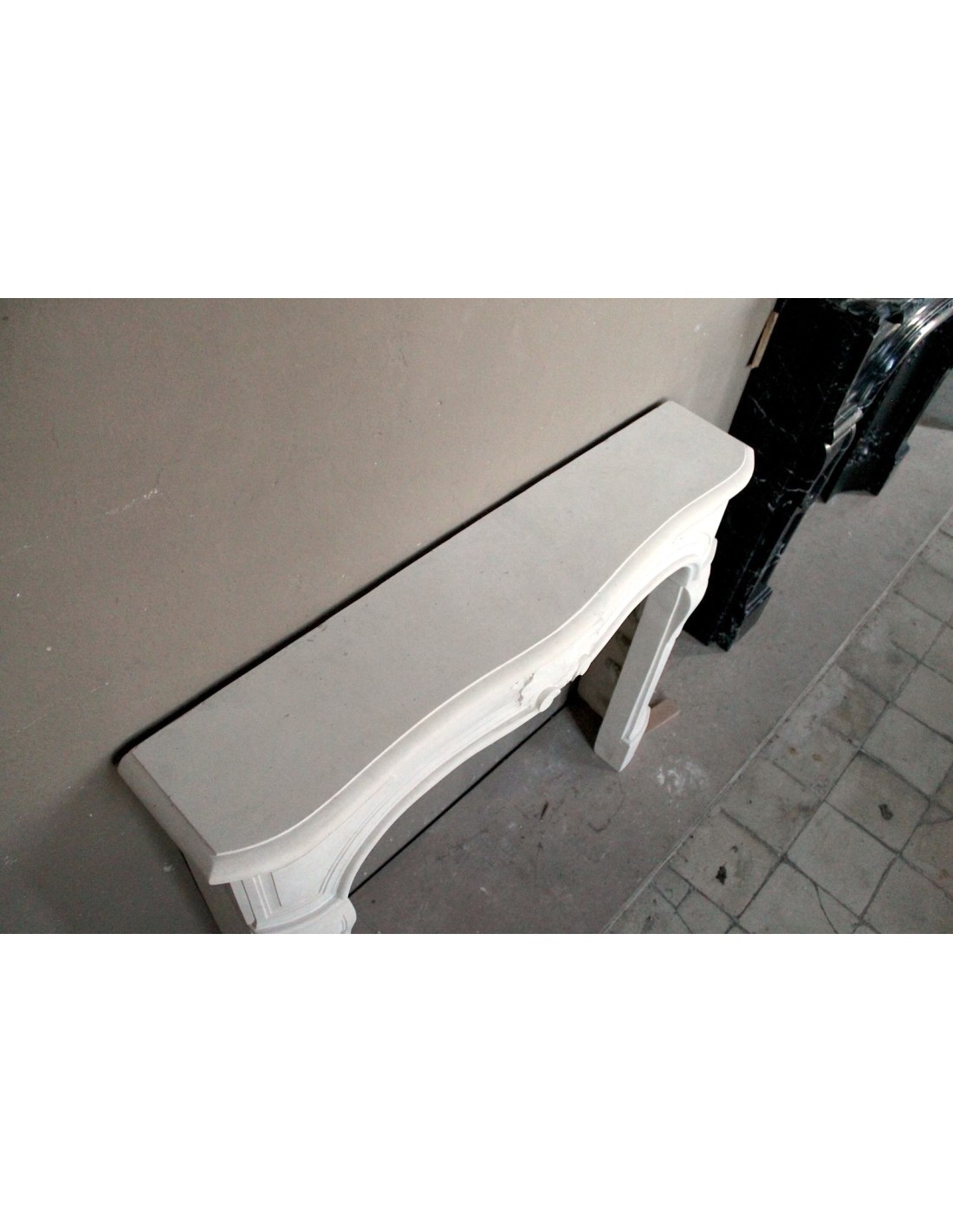 FINALLY, its particular stylism. The architectural layout of this mantel is, clearly as generically, definable as Louis XV,though. However, its frontal does not have the classic pair of breasts (just go to the Louis XV section to see which “breasts” I am referring to) but a frontal with a slight, very elegant and unique “fall” in the center and an overhang-also in the center-to the front)... However...the differences are not over. Now let's go and look at the legs of this elegant fireplace and it will be easy for us to notice immediately how, while in the Louis XV fireplace the legs are placed at 45° and therefore visible even from the side, our legs (very similar in workmanship to the classic Louis xv), are positioned with the gaze in front, like two little soldiers in a garret..