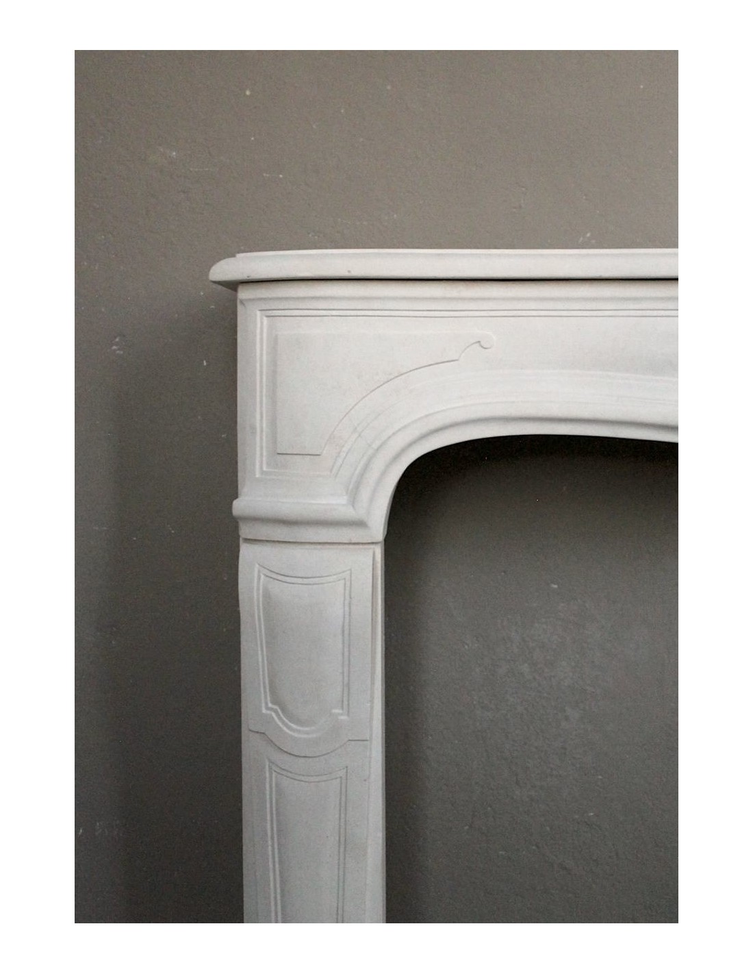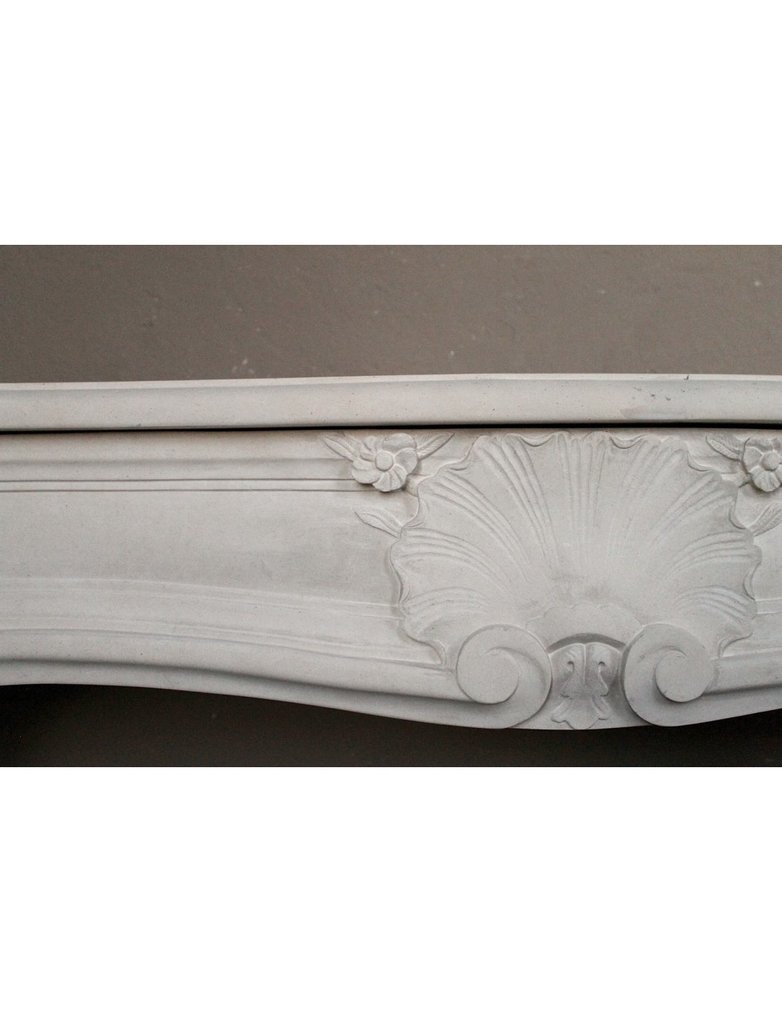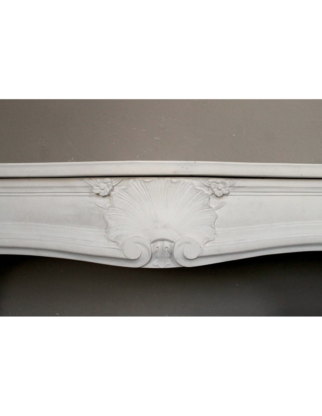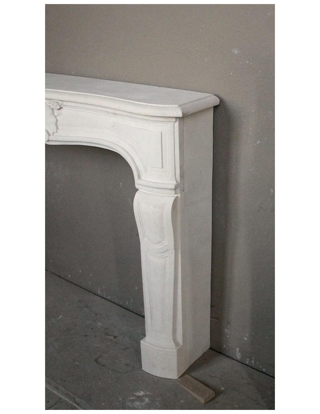 FINALLY, its particular stylism. The architectural layout of this mantel is, clearly as generically, definable as Louis XV,though. However, its frontal does not have the classic pair of breasts (just go to the Louis XV section to see which “breasts” I am referring to) but a frontal with a slight, very elegant and unique “fall” in the center and an overhang-also in the center-to the front)... However...the differences are not over. Now let's go and look at the legs of this elegant fireplace and it will be easy for us to notice immediately how, while in the Louis XV fireplace the legs are placed at 45° and therefore visible even from the side, our legs (very similar in workmanship to the classic Louis xv), are positioned with the gaze in front, like two little soldiers in a garret..