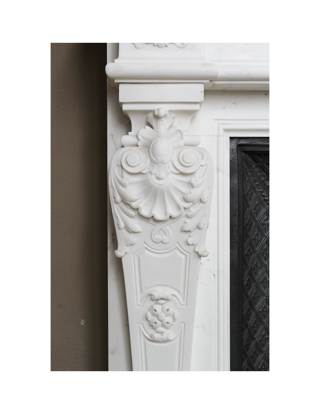 Our fireplace mantel was undoubtedly designed by a French architect (Italian “fashions” were quite far removed from these lines and these strictly Gallic modes of construction) while the workmanship I judge to be undoubtedly Italian (Lunense) given the presence of various workings in slight undercuts that generally only sculptors of the Italian school knew how to do.